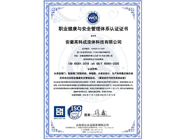 安徽英科成流體科技有限公司位于黃山腳下長江之濱的中國古銅都-安徽省銅陵市。公司注冊資金1.1億,是國內(nèi)一家專業(yè)致力于給排水行業(yè)系統(tǒng)解決方案、閥門以及智能閥門技術(shù)研發(fā)與生產(chǎn)銷售服務(wù)為一體的企業(yè)。   我們擁有完善的質(zhì)量控制體系和檢測設(shè)備,公司主要的產(chǎn)品有閘閥、蝶閥、偏心半球閥、液控蝶式止回閥、靜音止回閥、橡膠瓣止回閥、活塞式流量調(diào)節(jié)、錐型閥、節(jié)能型泵控閥、倒流防止器、減壓閥、排氣閥、排泥閥、伸縮器、閘門、啟閉機等二十多個系列,可以充分滿足客戶的一站式需求。……