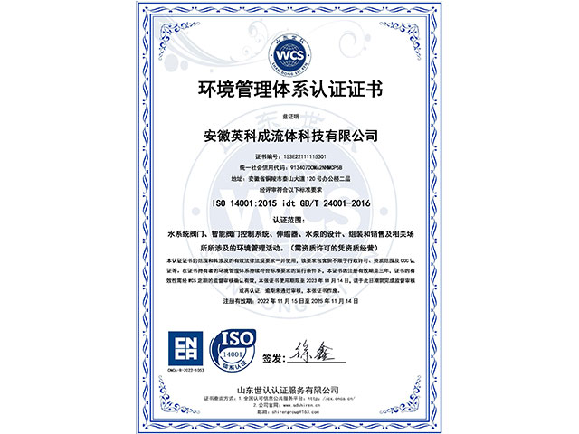 • 環(huán)境管理體系認證證書